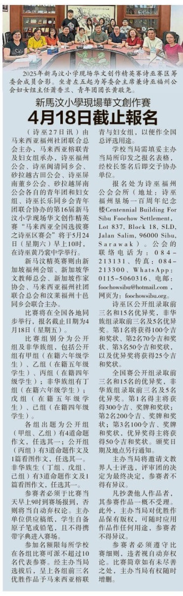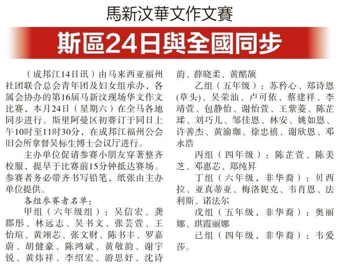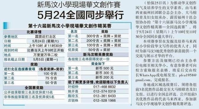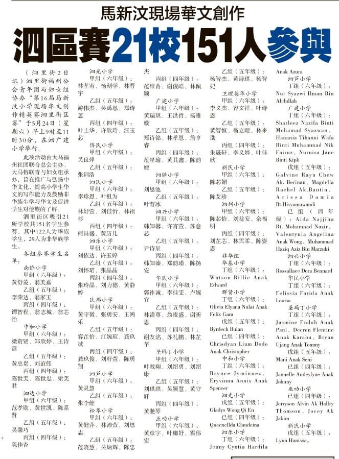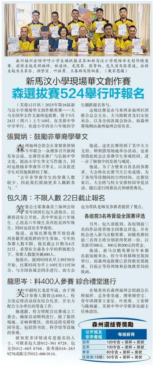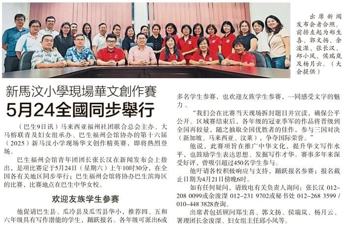 24/05/25 大马榕联青及妇女组承办第十六届新马汶小学现场华文创作精英赛--马来西亚全国选拔赛