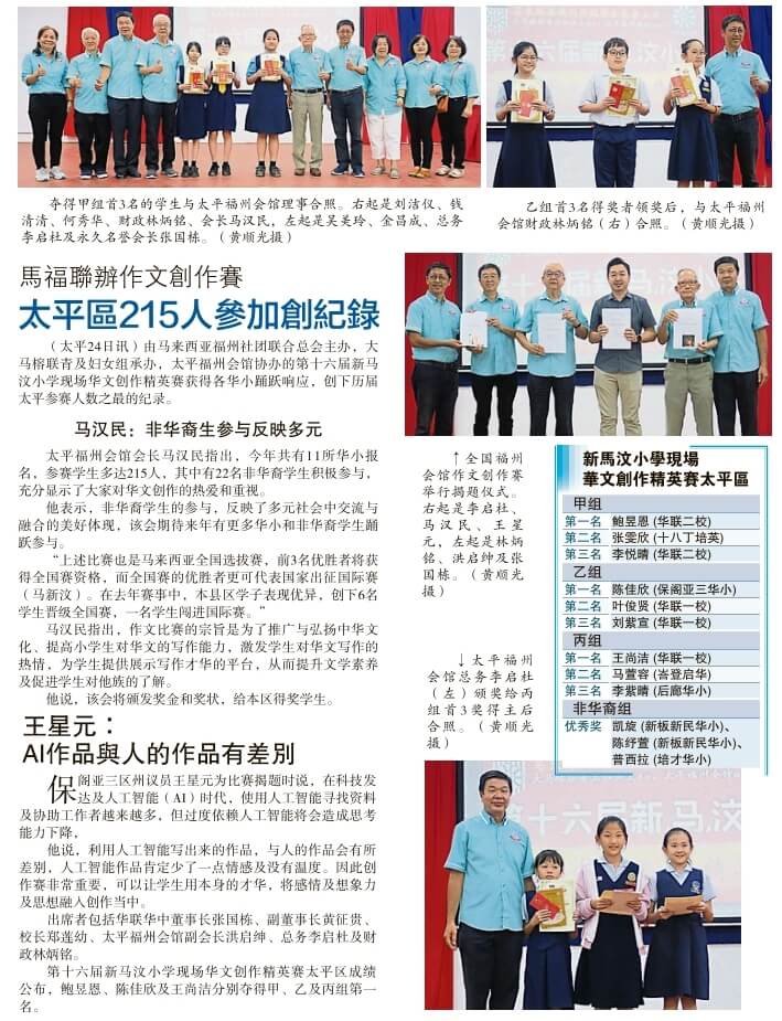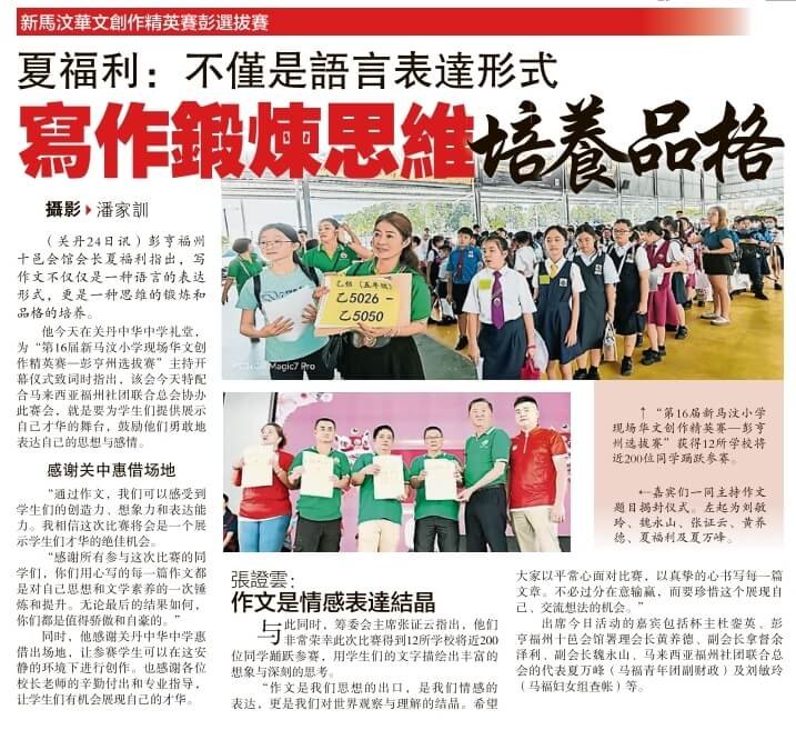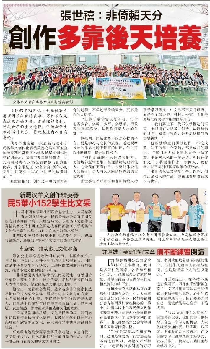 24/05/25 大马榕联青及妇女组承办第十六届新马汶小学现场华文创作精英赛--马来西亚全国选拔赛